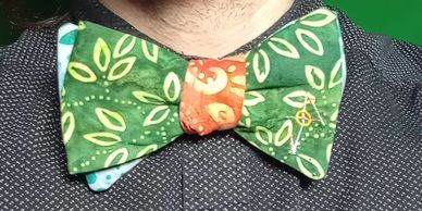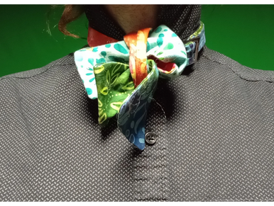 The desired bow pattern should be shorter and facing your chest on the left side of your body.